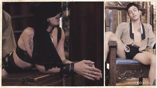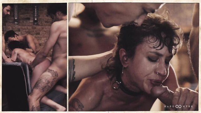 - Description: CORPORAL PUNISHMENT, CORPOREAL BLISS We are led – and almost literally so, leash and all, as lead performer Kleopatra appears blindfolded onscreen – into the second installment of HardWerk’s Triptychon series by the ring of a bell, the creak of an old wooden school desk, a nervous lick of the lips and three waiting figures. Hanging in the air with it all: anticipation, intention, veneration. It’s not for nothing that the filmmakers have adopted a slower pace for this intense gangbang – there’s a meditative quality to the echoing spanks and answering whimpers, to the push and the pull, to effortless dance of desire between the four participating performers; an absolute presence of mind and an absolute presence of flesh. As with the previous Triptychon film, the composition finds its own seamless choreography across multiple perspectives, so creating stunning juxtapositions between pain and pleasure; between a hand tightened around a throat and the easy laughter in each moment of disarming tenderness; between the polish of ‘pre’ and the primal of ‘right now’…