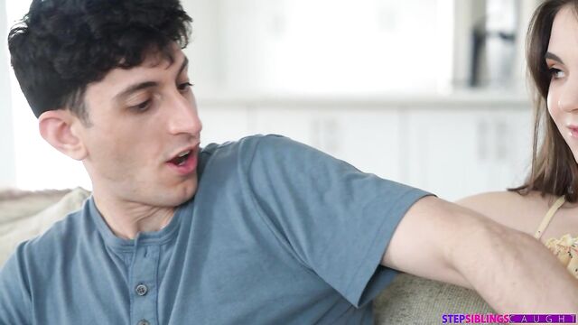 Megan Marx spies her stepbro Nick Stokes coming home from school. She tells him happy hump day and gives him a hug, leaving Nick confused. Later, Megan tells Nick happy hump day yet again and shares that she heard his girlfriend talking about how big his dick is. It may not be Wednesday, but it's the day Megan has decided to hump him. They're interrupted by Megan's mom arriving home.Megan hasn't given up on hump day. She waits a few days and then tries again. This time she gets Nick's hand down her shorts to feel how wet she is. Megan can feel how hard Nick is, too, and she wants to suck him off. Fortunately, it's hump day so she can blow Nick as long as her heart desires.Straddling Nick's hips makes it simple for Megan to slide down and ride her big dick stepbrother in cowgirl. She turns around for reverse cowgirl and then drops to her knees for doggy. Megan finishes off on her back with her thighs spread for Nick to dive nice and deep. He pulls out and covers Megan in cum just as Megan's mom comes home.