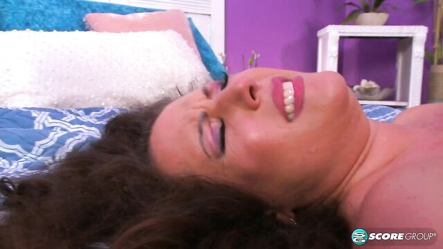 In her first porn video since 2008, 42-year-old mom and divorcee Anjelica Lauren gets back into the game by sloppily sucking Stallion's big, black cock, fucking it hard and taking his load of cum all over her face. Stallion really decorates her mug with his cum. When this scene ends, Anjelica's face is covered in cum.