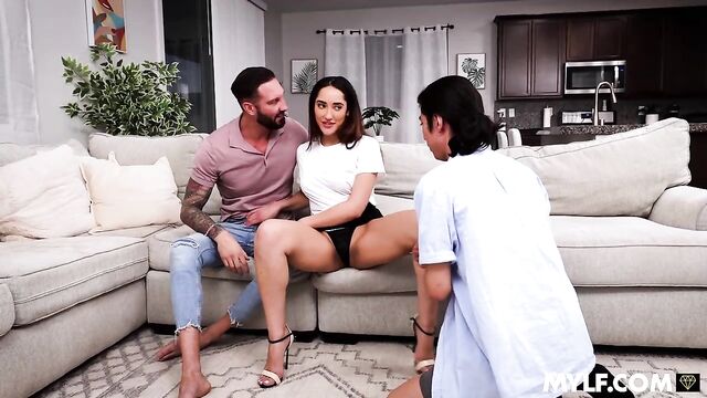 When Chloe attempts to enter her house through the window, she finds herself stuck. Her husband, Quinton, sees an opportunity to be cheeky and pulls his cock out. He can see right up her dress, and oh, what a wonderful sight it is. He pushes himself inside of her, and she loves this weird, kinky mess she’s ended up in. But things get even more wild when her stepson, David, approaches from the front. He has the same idea as his stepdad and pulls his dick out. Now, Chloe is getting fucked from the front and the back. When Quinton sees David, he flips out. But the stepfamily comes around quickly and gets right back to fucking. Chloe takes on both men like a champ, acting like the perfect slutty stepmom she knows she is. She had always dreamed of a day where she would be pampered by the most important men in her life. They treat her like the queen stepmom she is, keeping her holes filled and stimulated. She needs their cum, and the guys fuck her hard until they’re both shooting out hot loads for her.