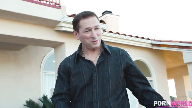 Petite blonde teen Kenzie Reeves has a problem: she can't stop fucking. When she doesn't have a dick in one of her holes, she has to constantly finger herself. On this day, she finds herself at her next-door neighbor's pool flicking the bean when middle-aged stud John Strong comes home and finds her there. Confused, he invites the young girl inside, but no sooner has she introduced herself than she's finger painting again. At first John wants to get rid of her, but when she begs him to satisfy her urges he can't help but sample this tight pink gash in front of him. After Kenzie polishes his knob and gives him a rimjob, John doesn't hold back anymore and gives her pussy and donk a deep dicking that only an experienced playa like himself can provide with his proud prick before he gifts her with his man juice. You'll love seeing this tiny chick's dainty tits and pink nipples bouncing on top of a real man's cock!