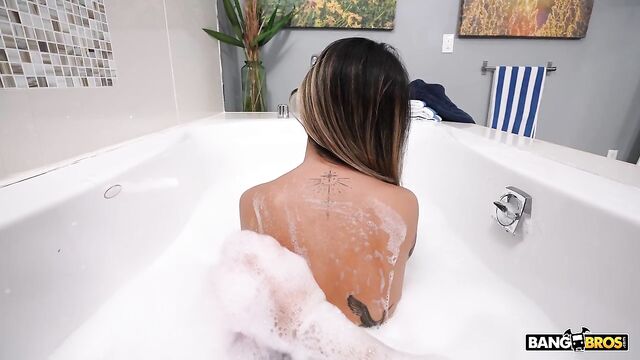Linda after a long day just wants to soak in the tub. Clearly, it’s the idea of the day as her roommate Nick is already in the tub. Not the one to wait, she asks can she just hop in with him, and it doesn’t have to be weird if they don’t make it weird. Nick agrees. He helps her wash and with her tight body and huge tits his dick can’t help but stick straight up out of the water. Linda can’t believe how big it is and offers to help him wash it. They both agree that telling their significant other about this is totally out of the question. The tension becomes too much for both of them to handle and Linda just has to sit on it. As he slides into her tight warm pussy, both agree it feels too good to stop. They get out of the tub and take it to the bed. As they fuck like they have been lovers all this time. Nick plasters her face with a ginormous load, and they both can’t be happier to be roommates with a new secret.