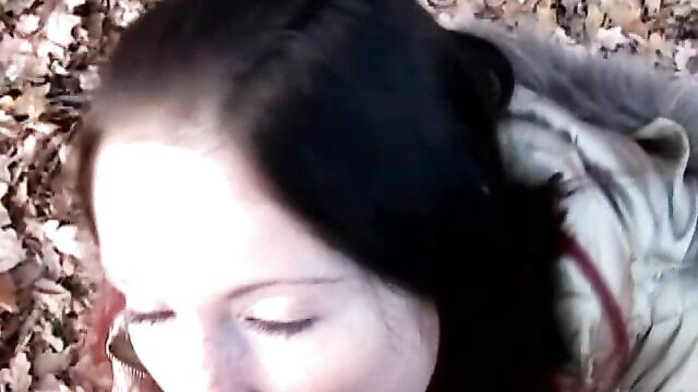 It's that time of the fall when the ground is already covered with leafs, but the weather is still warm enough even for having sex outdoors. That's when this beautiful teeny with awesome tits and fresh tight pussy gets down and dirty with her horny boyfriend after a romantic walk in a forest and ends up getting fucked doggystyle and riding cock right on a soft leaf carpet.