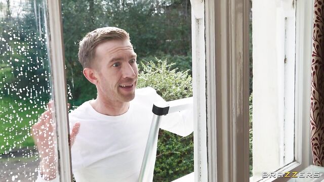 Pervy window washers Danny D and Xander Corvus get quite the view when they spot horny homeowner Kayla Wild masturbating in bed with her tits out. Watching the blonde babe get off is a helluva lot more fun than working! When they’re invited inside, they put down their squeegees and whip out their big cocks so they can give Kayla a threeway fucking that’s a lot more rewarding than getting a cash tip!