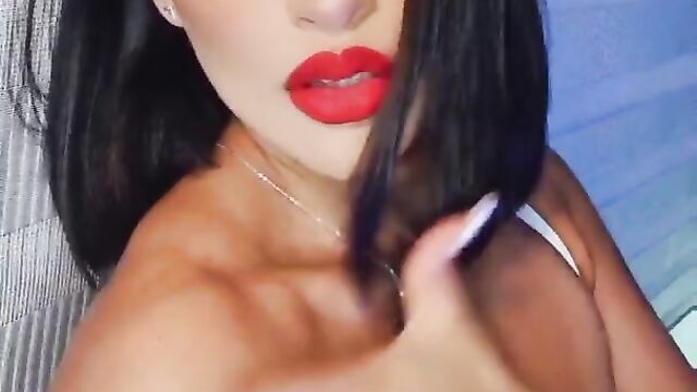 Brunette red lips teasing telegram soft