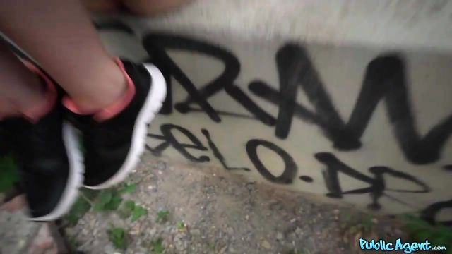 Martin and I were walking along when we saw this tight body babe in a pink shirt. We walked up and introduced ourselves to Chloe Bailey, who told us she was 19 and waiting for a friend. We offered her some cash for a casting, so she phoned her friend to delay, then came off with us to an underpass. She flashed her nice tits and then shook her juicy ass, and I offered her more cash if she'd suck my dick. When she saw how big my cock was she was more than happy to stroke it. Chloe gave me a blowjob, then I fucked her tight pussy until I came in her mouth. She swallowed my whole load!