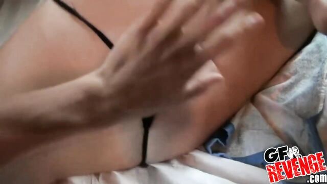- Description: GF Revenge is back with one brand spanking new, real sex video with a really hot brunette with a juicy ass! You're all going to love this sexy, hot momma prancing around in her teeny, tiny thong. Her luscious booty is a delight as well as her supple, big tits. This babe has divine dick sucking skills and really knows how to get down and dirty when it's time to fuck. Don't miss this bad girl get her perfect, pink pussy get slammed by her big dick fellow. She finishes him off with a nice rub and tug job and lets him shoot his milk all over her big boobs. Check out all the kinky fun here on this latest GF Revenge video update!