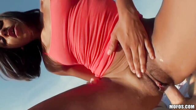 Blue skies and a prime booty, spread wide open for y'all to enjoy! Dude rolled his cam on his slutty GF Jazmine showing off the curves of her thick Latina ass while he fingered her pussy, and in no time he was pounding her hard and fast til she came.