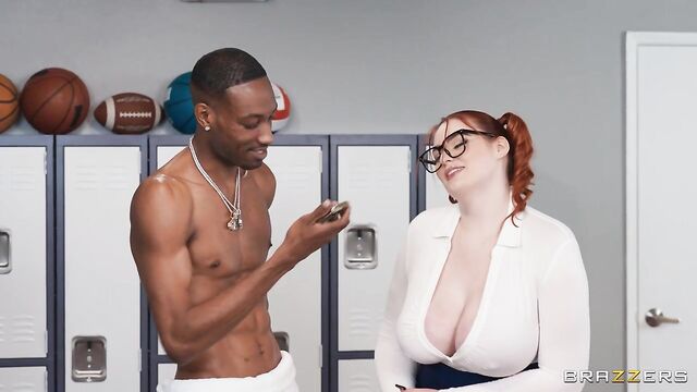 Abigaiil Morris is a seemingly shy nerd but she’s a slut deep down inside. She sneaks into the men’s football team’s locker room, where she masturbates while peeping on one of the team’s stars as he gets changed. Abigaiil makes too much noise and gets caught. He sees that the hot nerd is horny and after pressing her a bit, gives her what she wants: a blowjob. Soon the rest of the team enters, and like a revolving door they all join in on the action, leading to Abigaiil’s first blowbang!