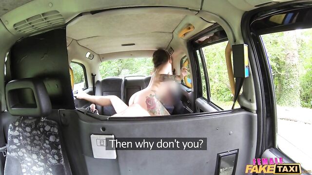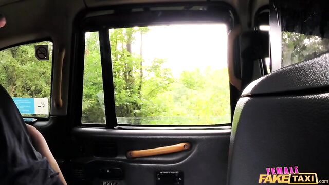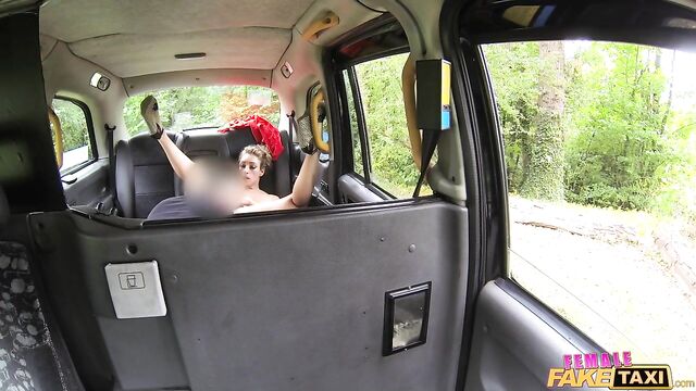 Ava should have known better than to sneak up on me from behind while I was taking a piss, because I turned around so suddenly, I accidentally splashed her dress with a couple drops. Since she wanted to hang it up for a minute to dry before taking my taxi on her shift, Ava tore it off and stretched out naked on my back seat. It didn't take long for this English tart to ask to taste my cock before heading out, and she was gagging on it as she made every inch disappear down her throat. Ava didn't pass up a chance to give me a rimjob, tonguing my arsehole then getting on all fours so I could lick both her holes from behind. All the ass-eating and pussy-licking got Ava so fired up, she hopped on my shaft and humped me like the wild British slut she is!
