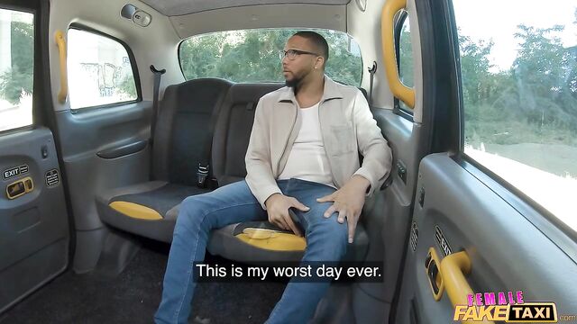 I was wearing a tight, sexy red dress when I picked up client John Legendary, who was in a hurry to get to work. However, I couldn’t get the Fake Taxi started, and then I discovered we were locked inside! While waiting for roadside assistance, I climbed into the back of the cab for some naughty fun. After deepthroating John’s meaty dick, I spread my legs so that the bespectacled hunk could eat out my dripping wet pussy, and then he banged me hard in missionary while playing with my huge fake titties! Afterwards, I bounced my juicy bubble butt on his cock in cowgirl, and then I took a hard anal drilling in doggystyle until the tattooed stud spunked all over my big ass!