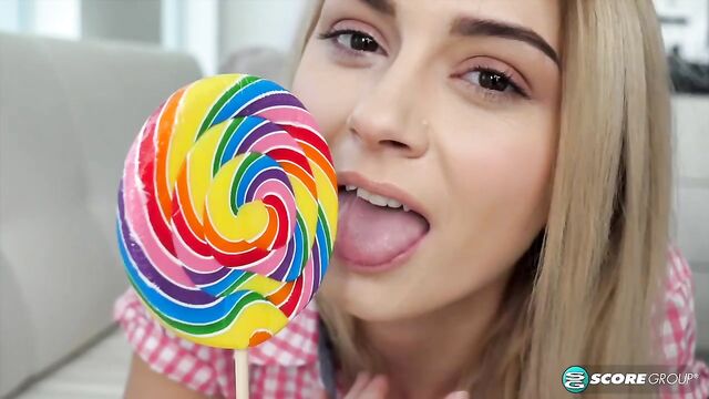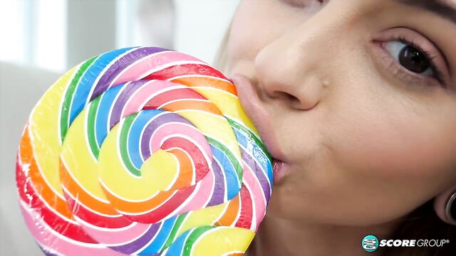 Chloe likes licking her lollipop, but she'd rather have something else to suck on, like a nice, hard cock. The thought of it turns her on, so she takes off her clothes--all while continuing to suck on her lollipop.