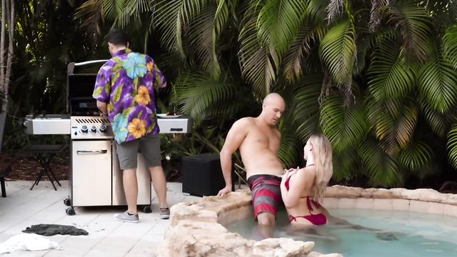 Blonde teen Bailey Brooke hoped her new bright red bikini would get her boyfriend's attention, but when he doesn't give her that D she just has to rub her pussy herself...until her man's buddy Sean Lawless arrives! Sean can't take his eyes off Bailey's big tits, and she gets them out to give him a better view, then sucks his cock in the hot tub right behind her BF's back. Bailey wants even more of that dick and she'll do anything to get it, so when the pool gets too crowded she heads inside to the shower where Sean can give her pussy a deep pounding and soak her face with his cum!