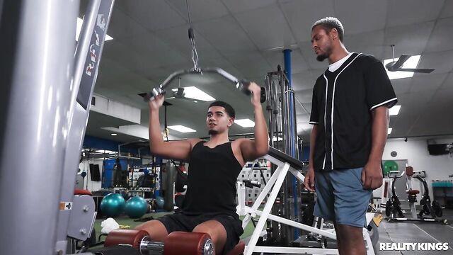 Petite and stacked brunette Melztube has the gym to herself, the perfect opportunity to pull out her big tits and take some selfies in the mirror. Her reps have her getting horny, and she starts touching herself on a bench, but before she cums, she has to put her clothes back on when Damion Dayski and his friends come in. Mel entices Damion away from the weight rack with her huge jugs and her juicy booty, and sneakily sucks and titty-fucks him. She begs for that big dick in her pussy and gets just what she wants... at least until Damion's friends catch them!