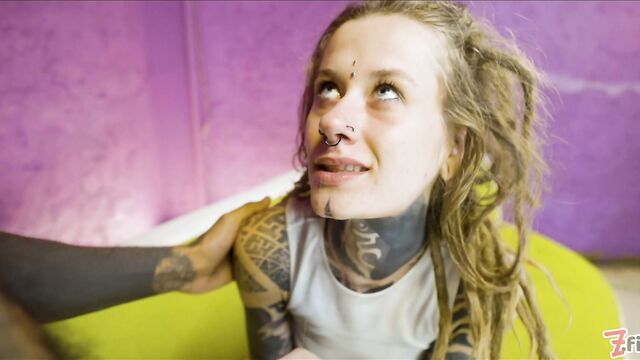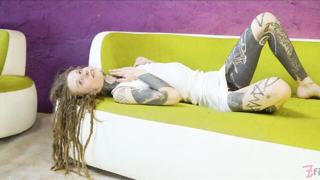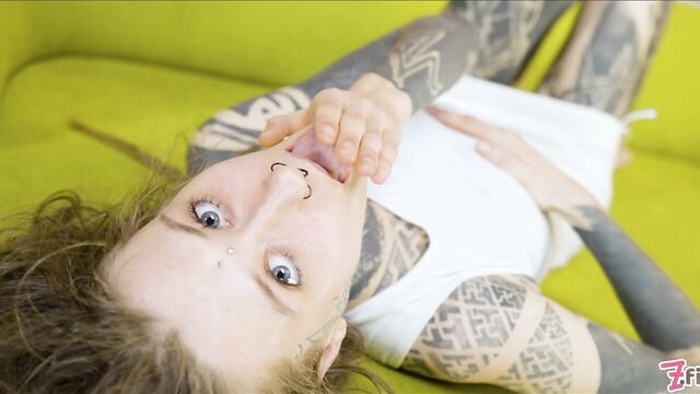 Lounging on the couch, Ceci Milkymouzz is ready to take on Papi's big long dick. She smiles as he places his cock in front of her face and Ceci enjoys licking and sucking on it so it will get really lubed up. Papi meanwhile fingers her pierced pussy and even uses her spit to get it ready to have his long ass pole plunged deep into it. But first he needs her to swallow his shaft all the way down to his balls as he holds her head in place. Then its time to lay Ceci on her back and push his member deep into her hole and unleash a pool of cum into her pussy.