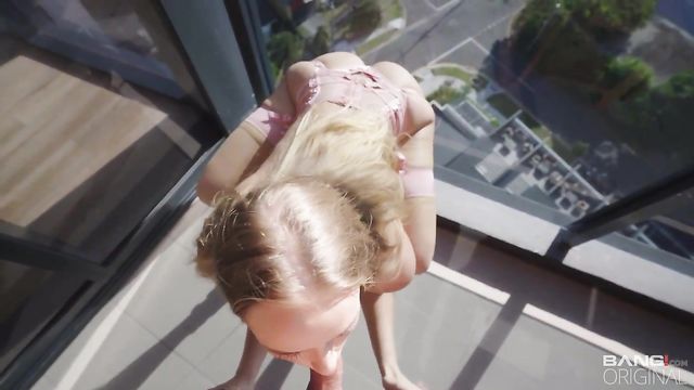 Secret Crush is waiting patiently in her seductive pink lingerie set, looking like a whole snack. She spreads her beautiful fit cheeks and shows you what is hidign underneath, a sparkly butt plug! There aren't any secrets left here, as she takes that amazing cock out to the balcony and slurps up and down on it to get it nice and wet. They go back inside and get that dripping wet cock all up in her perfect pussy.