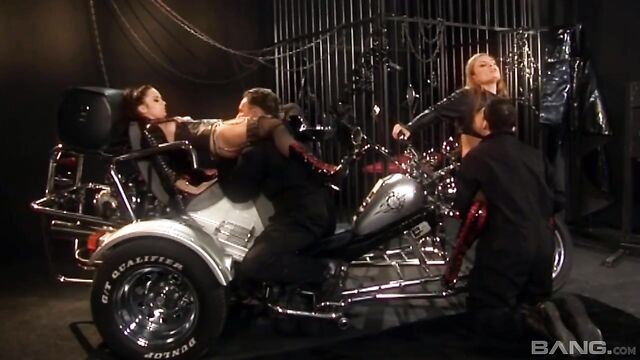 Bonny Bo and Katarina Sidney have boyfriends that ride in the same motorcycle club and for a naughty gift, they decided to make a naughty movie of them all having a foursome on their bikes. If you like leather and lace and watching hot chicks get fucked on motorcycles, this is the scene for you.
