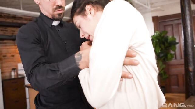 Ella June enjoys going to "confession" because she's got a kinky fetish for men of the cloth. This guy listens to her sins then tells her the only way to repent is to bend over and take it up the ass! See him give her a pile driver of a fuck in her tight little asshole and send her off with a few prayers to say afterwards.