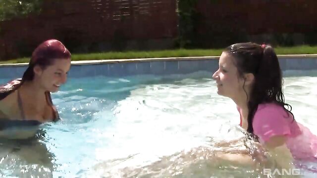 Judy Smile and Andie Darling had plans to spend the day sunbathing together, but it quickly turned into a hot lesbian sexcapade! Between the sweet smell of their suntan oil and the warm water caressing their skin, Judy and Andie decided to finger blast each other!