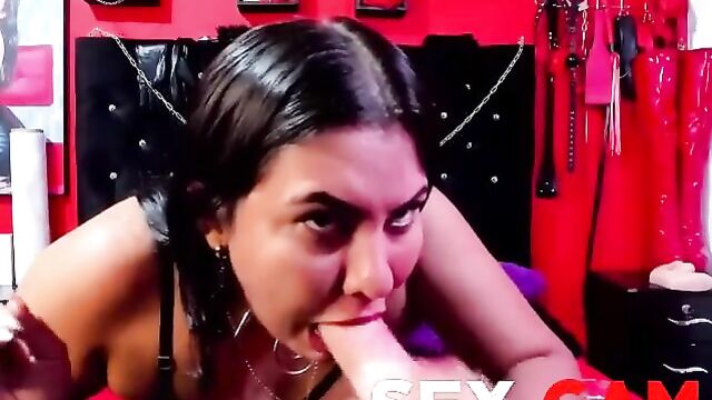Slutty MILF slaps herself and suck Dildo
