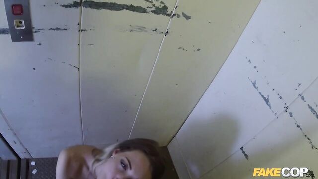 You wouldn't expect to find a hot secretary in an abandoned-looking warehouse building, but fate brought me together with Tamara. I'd only gone inside because I saw the front door open and needed to be sure the building was safe, and thanks to a stroke of luck, the elevator left me and Tamara stuck between floors. There weren't too many ways for us to pass the time, but imagine how my ears perked up when Tamara told me she'd always had a fantasy of fucking a naughty police officer. After peeling up her skirt to get my hands on her big peachy ass, Tamara got her big tits out so I could suck on her nipples. The elevator came unstuck while she was on her knees and started sucking my cock, but Tamara kept giving me that sloppy blowjob, then braced her head against the wall so I could facefuck her mouth. My police bodycam kept rolling while I pounded Tamara from behind, filming every deep thrust, recording a wickedly hot POV amateur porn I'll be showing all my mates at the pub!