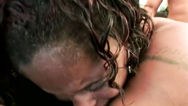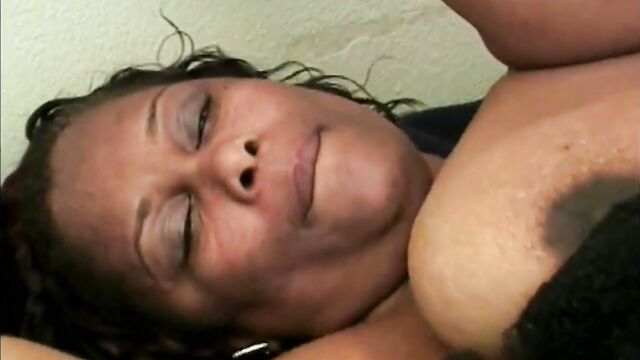 - Description: Chubby ebony slut with big nipples gets banged and jizzed on tits.
