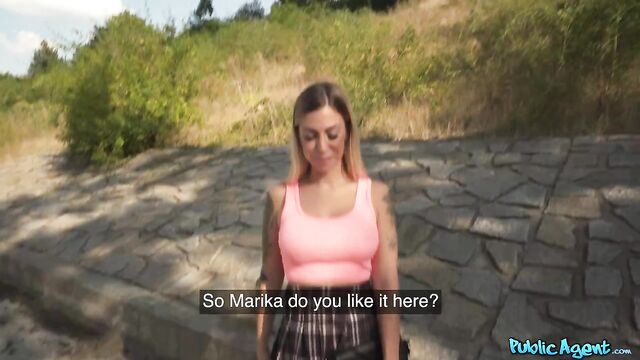 - Description: Today I met this sexy tattooed blonde named Marika Milani, who was happy to stop and chat. After handing over some cash, the Italian beauty flashed me her big boobs, and she even let me squeeze them! I gave Marika a few more euros for a blowjob, and then she bounced her tight pussy on my cock in cowgirl before taking a doggystyle pounding. I spanked her curvy ass hard as I fucked her from behind, and then the filthy minx spread her legs and invited me to bang her in missionary until I came on her tongue!
