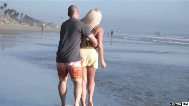 Ralph was just out and about for another day on the beach until he ran into Dayna. They hung out and walked across the beach together but they had a better idea in mind. Back home and still in their beach wear, Ralph and Dayna stripped down. Ralph gave her ass and good feel and then she got to work ready to make him cum. She sucked desperately, threw her huge tits into the mix and sucked some more. All she wanted was his load all over her face and chest. She licked his balls and his shaft and stroked him off some more. She was hungry and Ralph was losing his mind, until finally he let loose drenching her in lots of cum since she'd milked his dick dry.