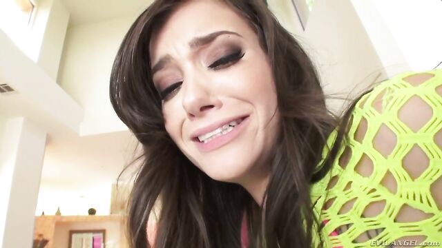 Petite brunette fuck doll Gia Paige is hungry for dick, and stud Mick Blue provides! In a stylish ensemble of tight jeggings and sparkly high heels, Gia wiggles her sweet ass while Mick slathers her in syrupy white lube. Her holes ooze the sperm-like grease as Mick prods her with toys. She slobbers over his massive cock in a POV-style blow job. Amid an intense ass fuck, Gia's bunghole gapes lewdly. After more play with the spunky lube, she sucks dick ass-to-mouth, hammering his shaft down her throat. He rewards her with a creamy facial load.