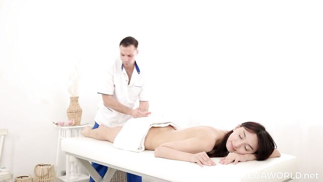 Ashly Rabbit loves pampering herself with different things. When she feels extremely tired, she comes to the massage studio to get rid of stress and tension. She takes off her sexy outfit and lies down on the massage table, getting ready to enjoy the masseur’s strong hands. He rubs her back and shoulders but then surrenders to the temptation of playing with her juicy pussy. Sure, she feels surprised, but she loves the initiative and gives him back the same pleasure.