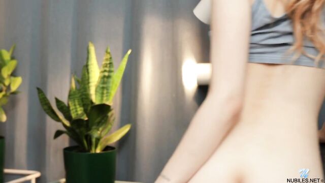 Watering her plants makes Ellie Wain keenly aware of how wet and eager her own bare pussy is, so why not get her pants off and go to work with a dildo? This teen holds nothing back when it comes to masturbating with her toy and moaning as she makes herself twitch.
