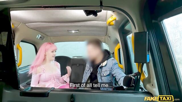 I picked up pink-haired babe Evie Reese today in the Fake Taxi. During the journey, Evie told me that she was having relationship trouble, and then she asked if I would be interested in having a sneaky fuck to get back at her boyfriend! After parking somewhere secluded, I joined Evie in the backseat. The filthy mare spat over my cock and gobbled it up in a raunchy blowjob, and then she took a missionary-style pounding while rubbing her clit to orgasm. Following some spooning in the back of the cab, Evie bounced on my dick in cowgirl before sticking out her tight ass to take a doggystyle pounding, and her pussy felt so good that I creampied it!