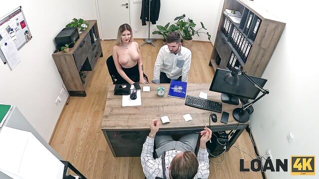 Humans by nature are no better than the Komodo dragons. If they get a tidbit, they swallow it, even if it is a bone in their throat. Having touched once the cherished wealth, people can not stop and for the rest of their lives are involved in a mad race for profit, abandoning happiness and morality. Having received the coveted credit, this couple suddenly realized that if they ignore their dignity, they will get even more. As a result, the husband got horns and the wife got a big creampie from the loan officer. Was it worth it? That's for you to decide.