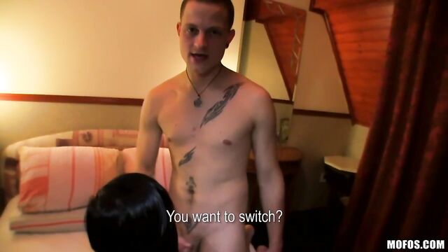 It's not all husbands who are down to share their wives. Our guy ran into this rando couple, who got hot for the idea of a nasty threesome with a stranger. All this horny little hottie's fuck-fantasies came true as she got to take a cock in each end.