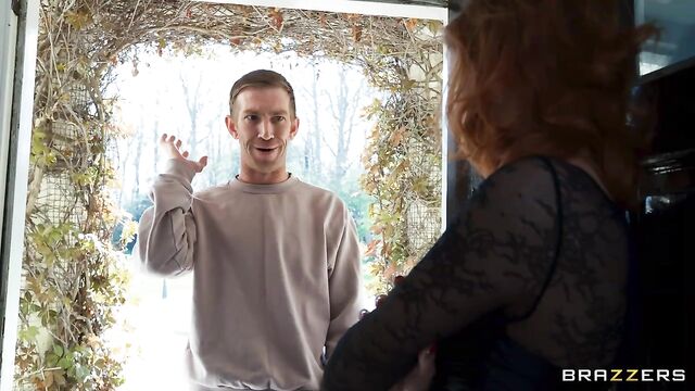 Danny D and Xander Corvus have just been sacked from their job. Their boss calls them as the two are pointing fingers and tells them to return the van to his house, NOW! But, when Xander and Danny show up, they have no idea where to leave the keys. Danny's curiosity gets the better of him, and he peeks inside the window to see who is home. On the couch, red-headed Mia Stone is putting on an XXX show for her camera! Danny knocks on the door to explain the mix-up but instead, Mia drags him inside for a blowjob. Xander refuses to be left out of the fun, and the two fill Mia's tight holes until both of them unload on her gorgeous face!