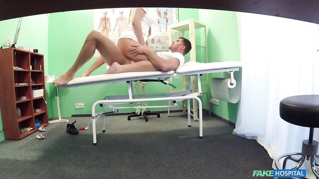 I was filling in for the Doctor. He had to go away for a few hours to see patients at home. I was just tidying his desk when in walk this tall, hot looking guy. He came in and sat down, he looked particularly down beat. I asked him why he had come in and it turns out he’d recently broken up with his girlfriend of 6 years! Quite a stretch! Anyway, we got talking and it transpired that he had taken another girl back to his apartment only to find his ex-girlfriend there! This had really shaken him up. I gave him re-assurance though that this was normal and he was going to have to move on to other girls sooner or later. I went over to him and sat on his lap, giving him a nice cuddle. I could feel in his trousers his cock getting harder and harder. Was he turned on? It certainly felt like it! I started rubbing it gently, he didn’t object. I pulled out his cock and started wanking it. He was loving this. Just what he needs I think. I left him on the chair, took my mouth down to his cock and gave him the best blowjob he’s ever had. I knew he’d want a taste of me, so we went over to bench and he started eating my pussy! I didn’t just want this though, I wanted him deep inside me! He decided to fuck me missionary for a bit, I let him do whatever he wanted! Then he spun me around and fucked me hard from behind! We fucked all over the office until he finished by giving me a beautiful cream pie!