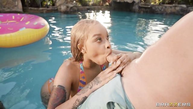 There's no better way to beat the heat than by sitting poolside, sucking down an ice-cold popsicle, and while she's at it, Advoree plays with her pussy too! With her tits out and horny for dick, Advoree lets Kyle Mason oil up her big boobs before she takes a dip, treating him to a blowjob and titjob from inside the water before her pussy gets pounded by the pool!