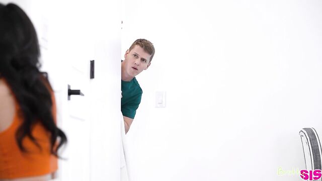 Sage Roux and his stepsister Lulu Chu argue about who is going to use the shower first. Lulu asks Sage if his dad is around, then tells him he can use the shower first. Sage is confused, but he takes her up on it.As soon as Lulu thinks Sage is showering, she sneaks into the kitchen to suck his dad's dick. Saage catches her in the act, but Lulu silences him by showing him some tit. As soon as Sage's dad blows his load in Lulu's mouth, he takes off leaving her unsatisfied. She offers to suck his dick and fuck Sage if he'll keep quiet.Leading Sage to the couch, Lulu kicks things off by blowing him before she climbs into his lap to ride in cowgirl. Turning around for reverse cowgirl lets Lulu moan as she takes her stepbro nice and deep. She rolls onto her back so Sage can dick down her trimmed twat, then gets on her knees to get finished off in doggy. Opening wide, Lulu lets Sage pop in her mouth so his cum dribbles down her chin. They agree they should do this again sometime.