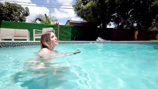 Marica Chanelle figures out her phone is waterproof and commissions her friend Duncan Saint to shoot some videos of her underwater. She wastes no time letting her big tits loose to float around freely as he's filming her. Eventually they dry off together and she asks him to lotion up her big juicy jugs. He politely rubs lotion on her enormous boobs and then proceeds to lotion up her shoulders. She is willing to fuck him after hearing he recently broke up with his girlfriend. They go inside and fuck in the living room. She wants his big dick in her ass. They fuck hard. She rides his cock. He obviously cums on her face.