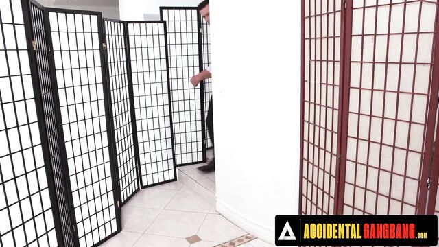Ramon Nomar cumshot video from Accidental Gangbang by Adult Time