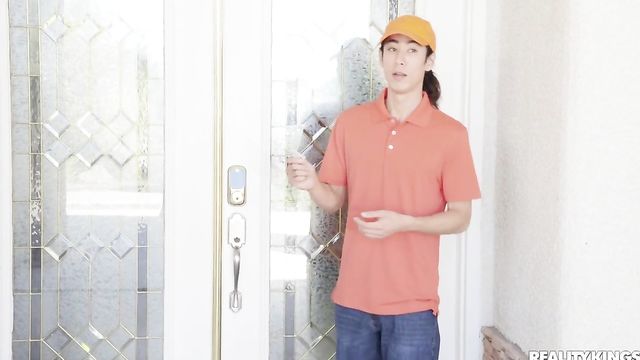 When hot girls Kylie Rocket and Nicole Kitt are super bored, they decide to try out a naughty prank. They order a package, and when delivery guy David Lee arrives, Kylie takes her top off in front of him before Nicole drops her towel to show him her fully naked smokin' body! Kylie wants more, so she tells David to watch through the window as she takes Nicole into the bedroom to eat her pussy and scissor her, and after she starts fucking her bestie with a strap, David sneaks in to take her place! This delivery dude gets more than just the tip as these babes ride him and sit on his face before he gives them both a facial.