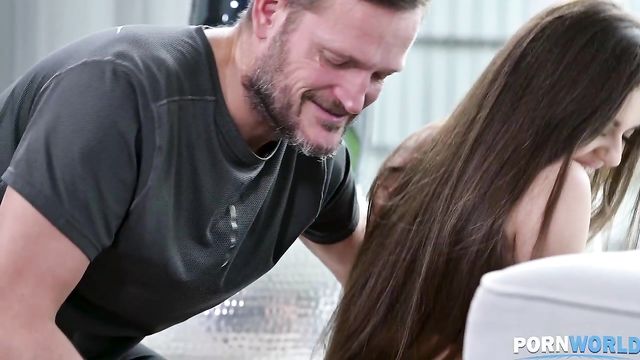 After washing, rubbing and fingering her tight little pussy in the shower, Lizi Vogue joins her fitness coach Yanick for a little stretch session in the living room. It doesnt take long for the stretching to become sexual, and within a few minutes, Yanick has his cock in Lizis mouth. From there, Lizi takes off her workout clothes and fucks her coach in several positions on the couch. After letting him ram his cock in her asshole, she sucks him dry.