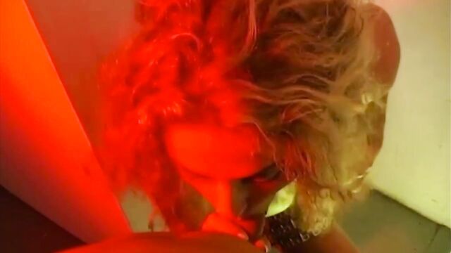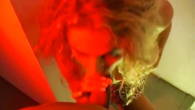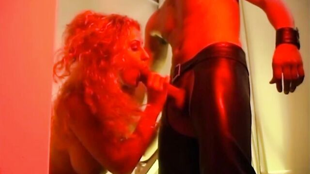 Yessy is a girl with wavy blonde hair and in this clip she is on her knees sucking on a guys dick. She's wearing a skirt of chains and tall high heels and her big natural tits are bouncing around while she sucks and strokes his meat. He gives her a nice load of cum for all of her efforts.