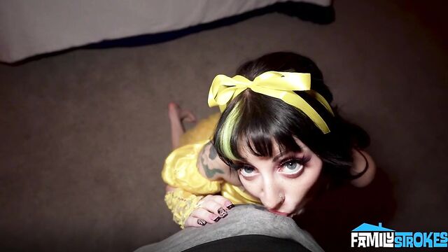 - Description: Dressed in the slutiest princess outfit, Kitty sits alone in her red-lit bedroom, taking a breather from the Halloween party her stepbrother Austin threw in their house. She was captivated by a mysterious masked man who had been watching her all night. Her deepest and darkest fantasies soon become real when the mysterious character enters the room. Drawn to him, Kitty gives him a kinky moment to remember her until someone interrupts the moment. After the chaotic Halloween party, Austin and Kitty wake up chained together in a strange, empty house with an old, flickering TV. A creepy character pops up and tells them that their lives depend on what they do next. If they want to get out of there alive, they must follow her crazy instructions. Forced into vulnerability, the two confess secrets to each other while masturbating together, hoping to get rid of this maleficent presence once and for all.