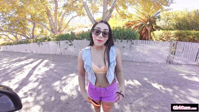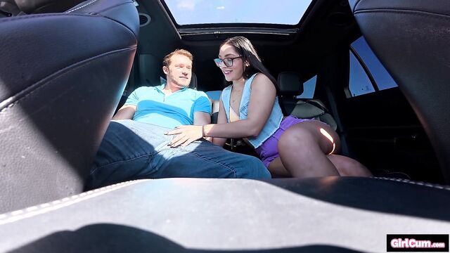Madison is waiting for a ride when Sam spots her and offers her one. She starts sucking his dick in the car and they head over to his place for an orgasmic fuck!