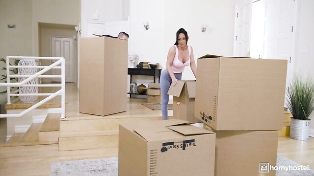 Jennifer White and her husband are finally moving into their dream home. The moving process make Jennifer very horny and tries to seduce her husband to take a break for some celebratory sex, but her husband is too stressed to get busy! Thankfully, one of the movers has been checking out her body all throughout the moving process! And he can help her with her needs after the husband rejects her.