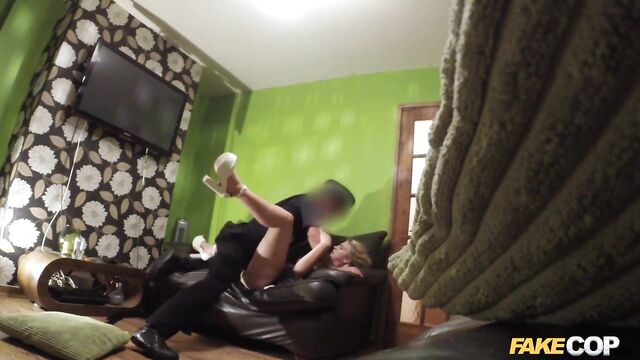 - Description: Whilst on routine patrol, I spotted a busty blonde on her apartment balcony. As soon as she saw me she went back inside. That looked rather suspicious to me and a perfect excuse for me to go knocking on her door. I knocked on her door to find out if she was up to anything naughty. She explained that she was just having a night in. I asked her if I could come in and take a look around. She agreed to let me in her apartment to prove that she had nothing to find. I told her that I was just patrolling the area and that I enjoyed meeting the residence, especially those as sexy as she was. She took the compliment very well and we got comfortable in her living room. As she had nothing better to do, I suggested that we had a party all of our own. This was music to her ears. She whipped out her big bangers for me to have a suck on. She had fantastic big boobs that bounced like crazy as she rode on my rock hard cock. Her pretty blonde face took the full force of my load as my cumshot rebounded of her cheek.