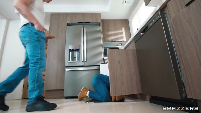When sexy plumber Angela White shows up in tight denim overalls to fix Zach Wild’s "leaky pipe," the tension is already dripping wet! One look at her big bouncing boobs and suggestive tool-handling sends Zac’s naughty thoughts running wild! While trying to fix the problem under the sink, Angela’s sweet ass is calling for some action, and what starts as a routine repair quickly turns into a hands-on, full-body service call! Zac rips open Angela’s overalls, and his fantasy comes true when he has hot anal sex in the kitchen with the hottest plumber he’s ever laid eyes on!