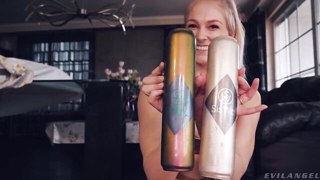 - Description: Wearing a silky, gold two-piece with black heels, blonde cutie Siswet exchanges sexy banter with off-screen director Proxy Paige. 'I could watch you all day long,' husky-voiced Proxy says from behind the camera. Siswet exposes her small, natural tits. She perches on all fours to twerk her tight butt. The pretty babe introduces her arsenal of sex toys. Siswet pulls aside the thin fabric of her bottoms, giving us a glimpse of her pussy and asshole. She scoops up a handful of thick lube and massages it into her rectum, priming it. Siswet stuffs a massive dildo up her ass and buttfucks herself with it. She lies on her back, plunging the thick phallus into her sphincter for an outrageous, solo masturbation fuck! Finally, Siswet shows off her fully fucked anus; it prolapses slightly, showing internal anal flesh.