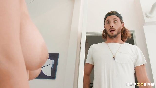 Violet Myers's new girlfriend wants to know if her big tits are real, and so she recruits her brother, Lucas Frost, to spy on her in the shower after she comes home from a jog. Lucas is at first against the idea, but being the good bro that he is, he takes his sister's camera and peeps on Violet, whose tits are very real and very fantastic! When Lucas lingers a little too long, Violet catches him spying on her. Seeing how her girlfriend sent her brother to do her dirty work, Violet decides to not only let Lucas look at, but also feel her big naturals, teasing him from inside the shower before having wet and sneaky sex in the bathroom!